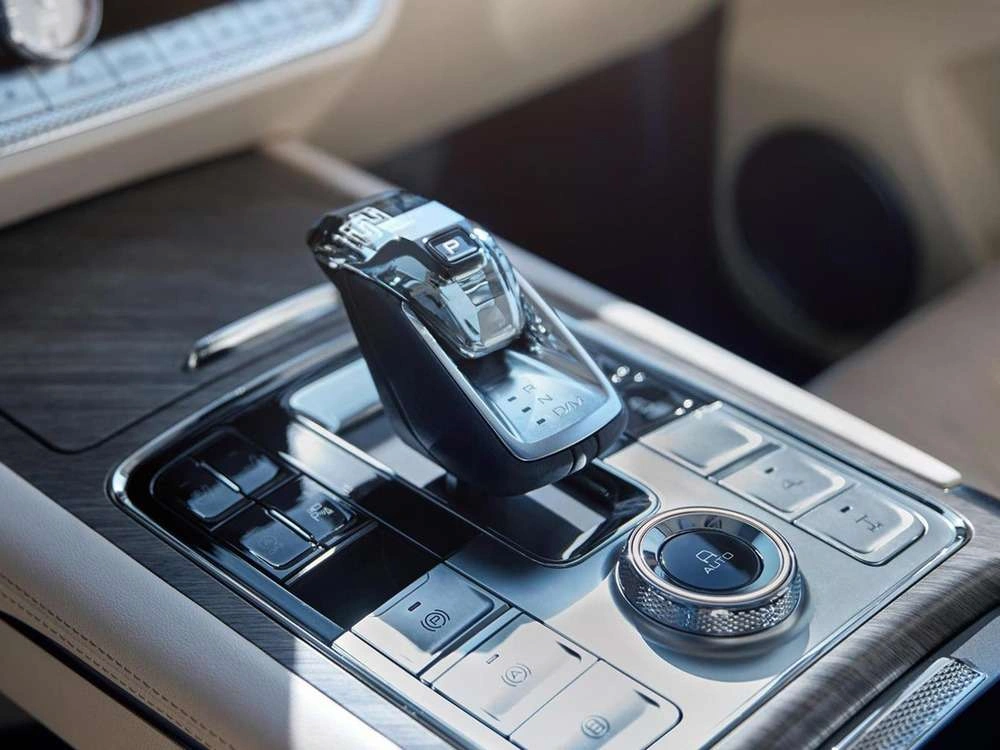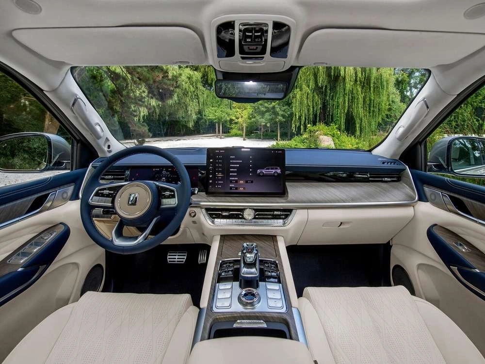 Центральный подлокотник сидений заднего ряда с подстаканниками, отсеком для хранения и сенсорным экраном управления функциями автомобиля